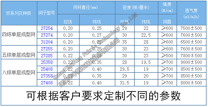 成型網(wǎng)特性: